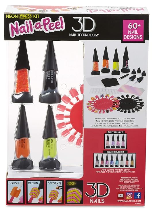 Create glowing 3D nail designs: The kit comes with neon-colored 3D gel polish that allows you to design and build eye-catching dimensional nails.